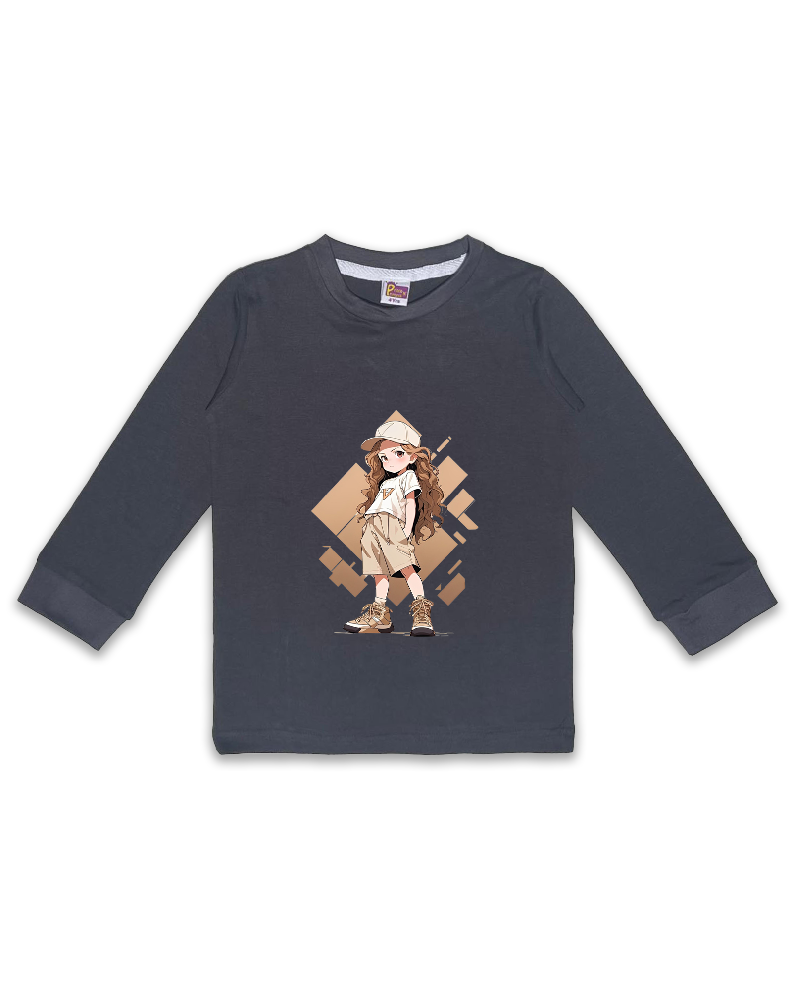 Kids’ Printed Full Sleeve Tees – Dark Grey Tees for Girls FTS0166