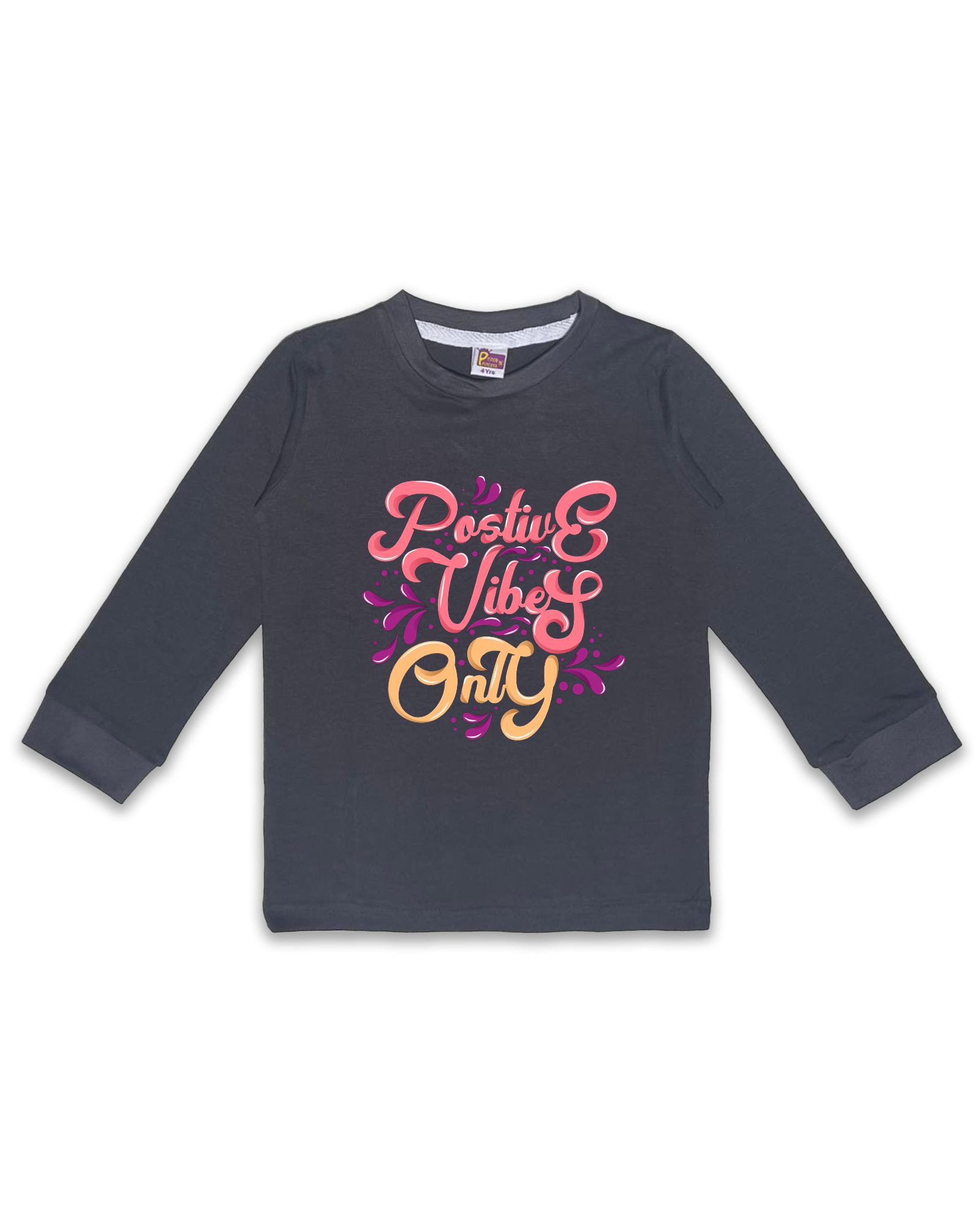 Kids’ Printed Full Sleeve Tees – Dark Grey Tees for Girls FTS0159