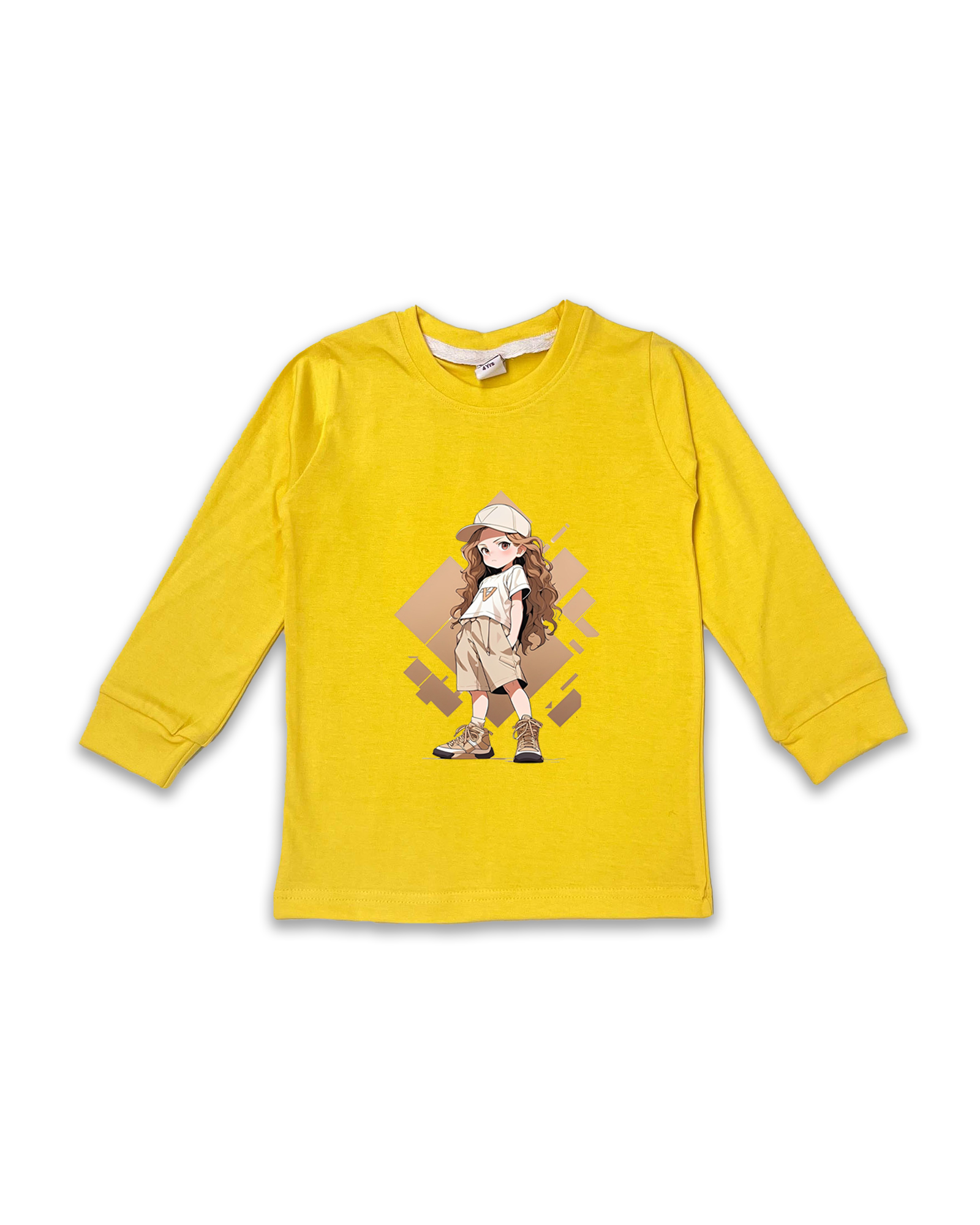 Kids’ Printed Full Sleeve Tees – Yellow Tees for Girls FTS0173