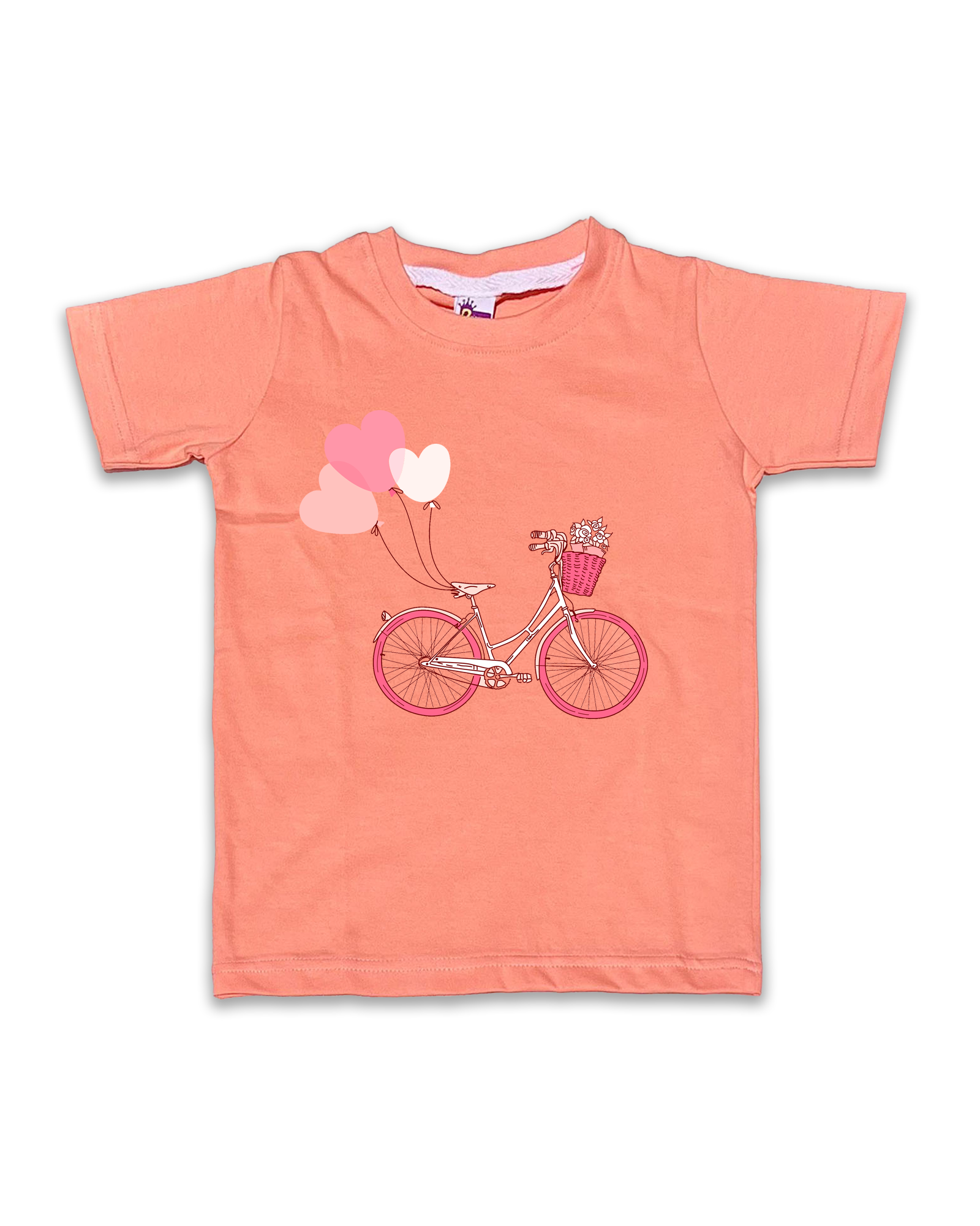 Kids’ Printed Half Sleeve Tees – Peach Tees for Girls FTS069