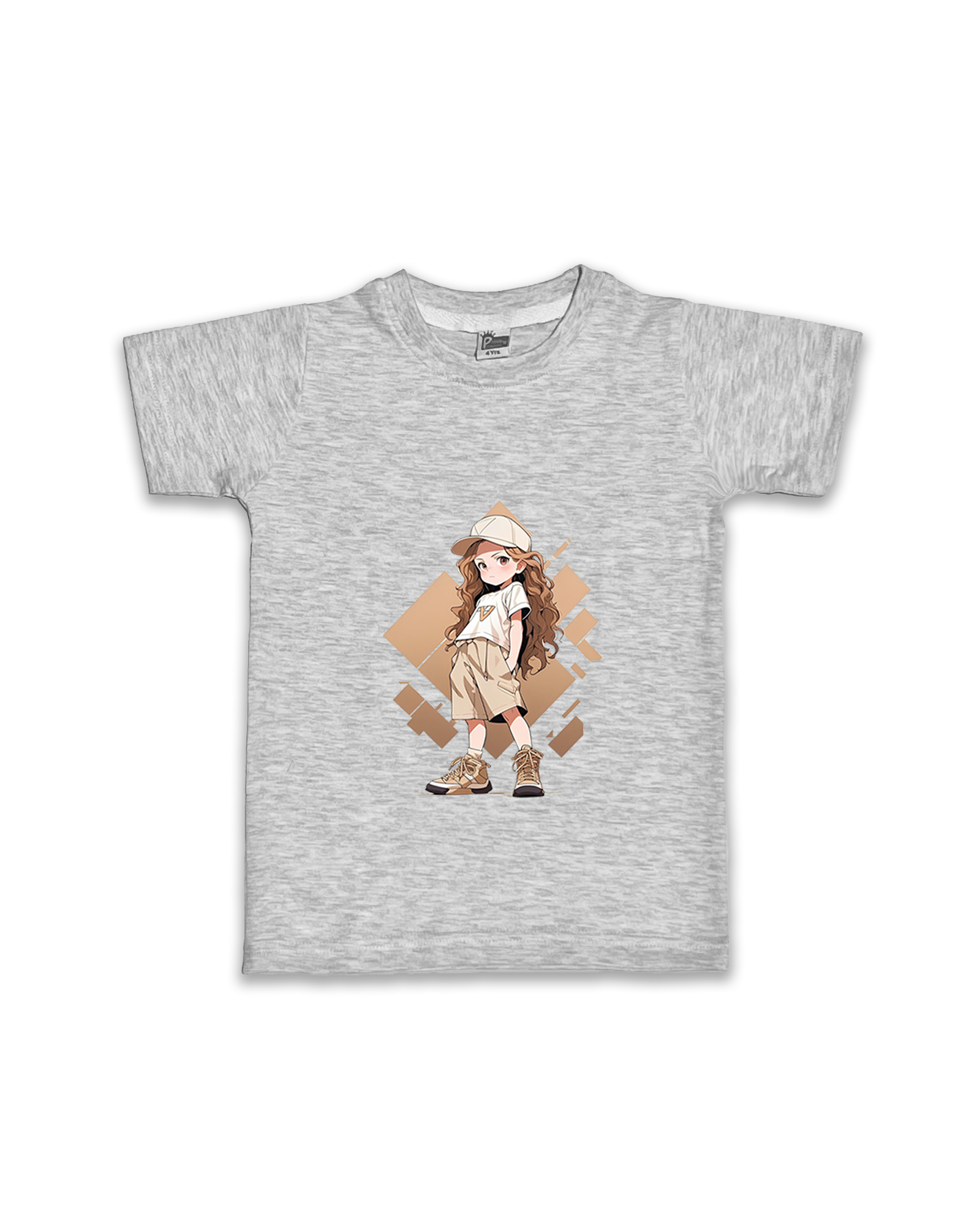 Kids’ Printed Half Sleeve Tees – Melange Tees for Girls FTS071