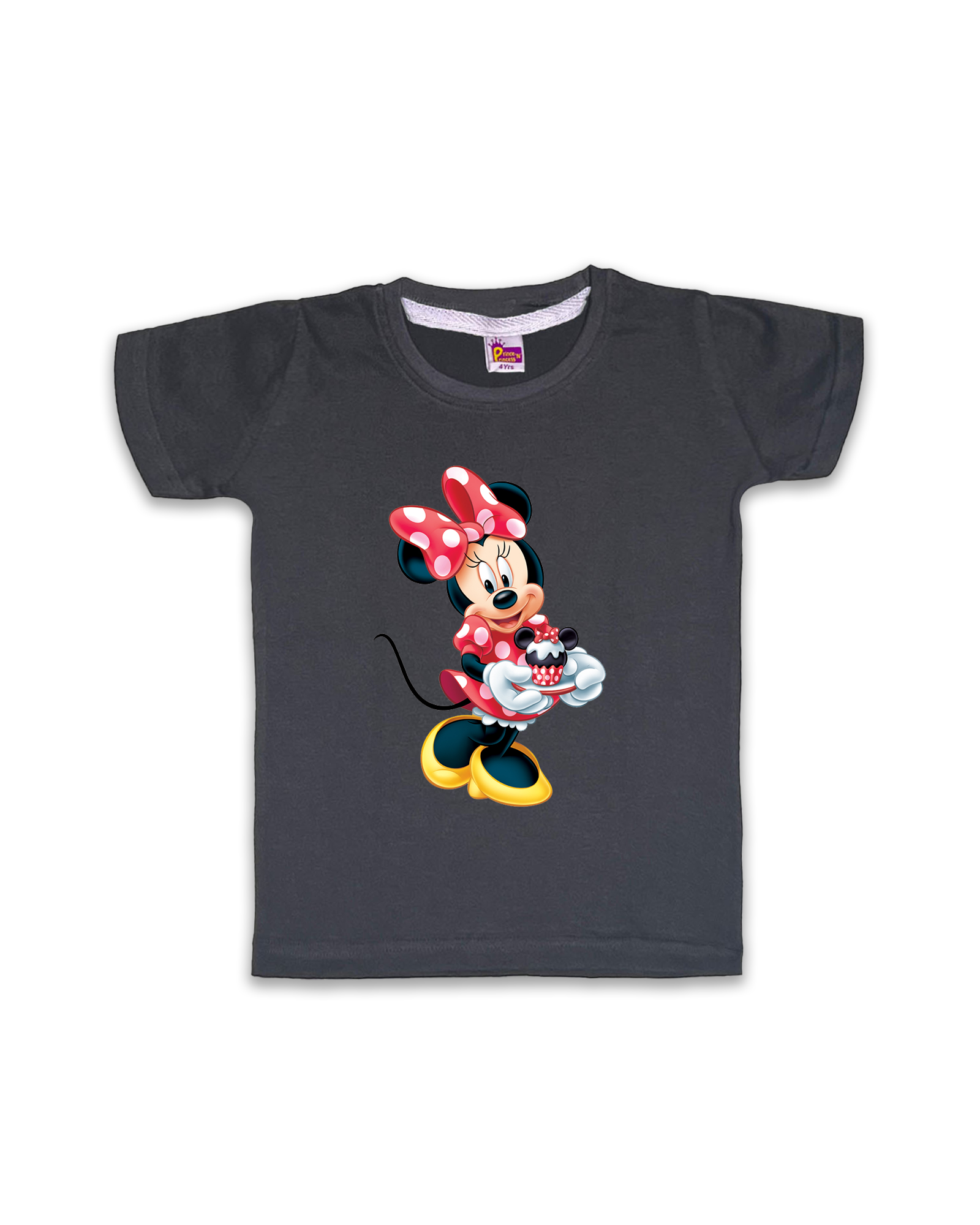 Kids’ Printed Half Sleeve Tees – Dark Grey Tees for Girls FTS054