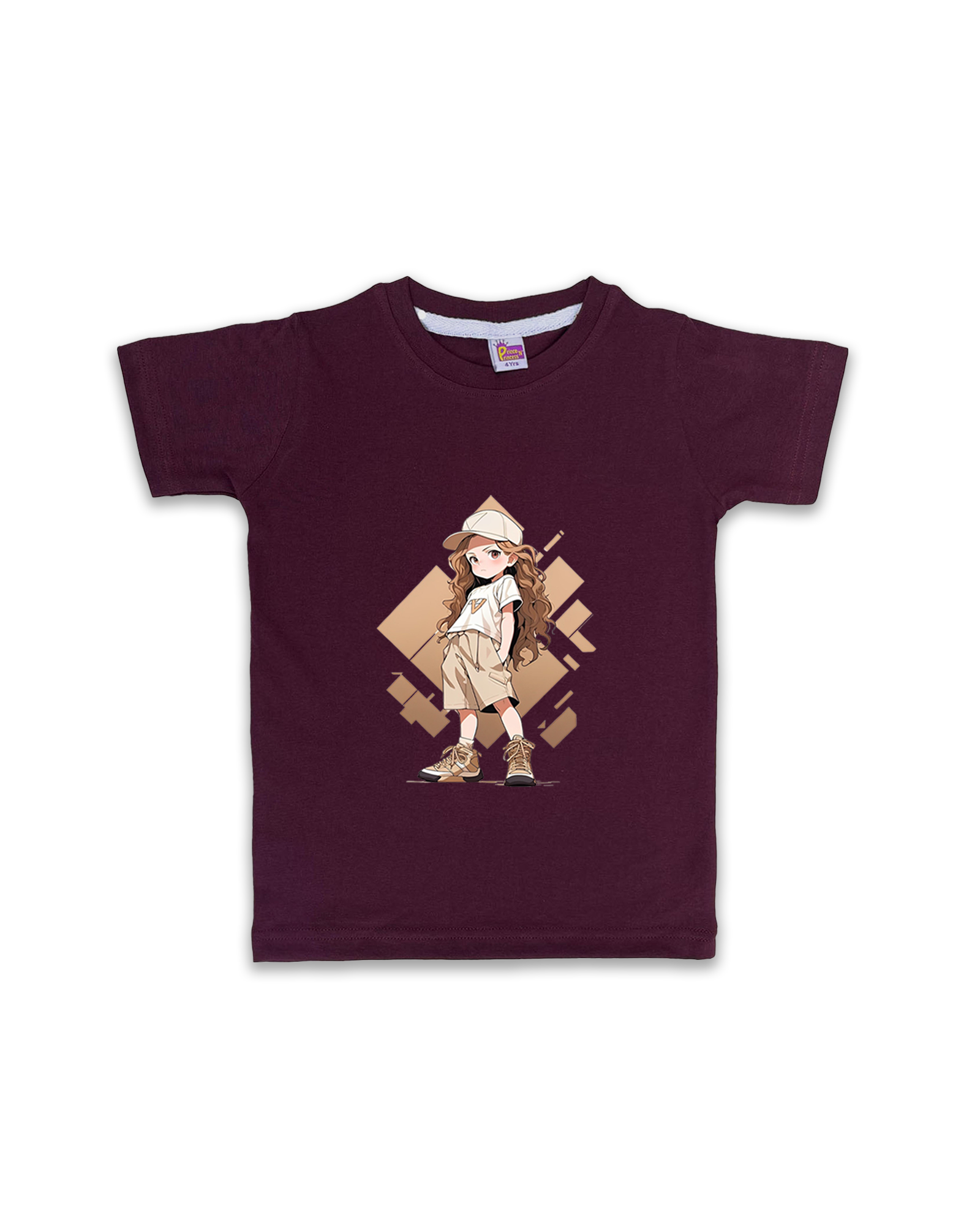 Kids’ Printed Half Sleeve Tees – Wine Tees for Girls FTS075