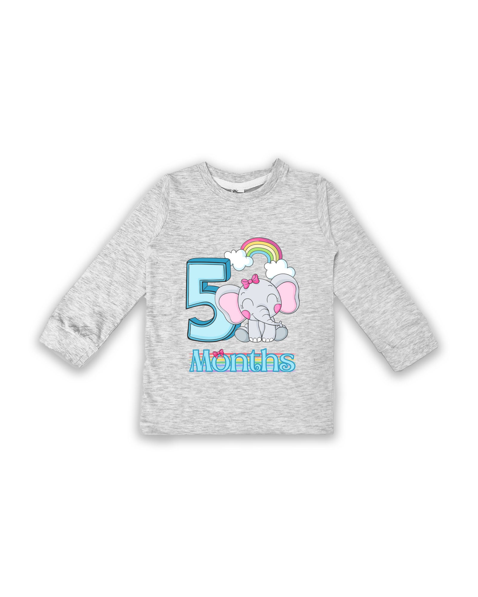 Newborn Full-Sleeve Melange Tees - 5 Months Milestone Tees with Adorable Elephant & Rainbow Design - Soft Cotton Baby Tees NPT0231