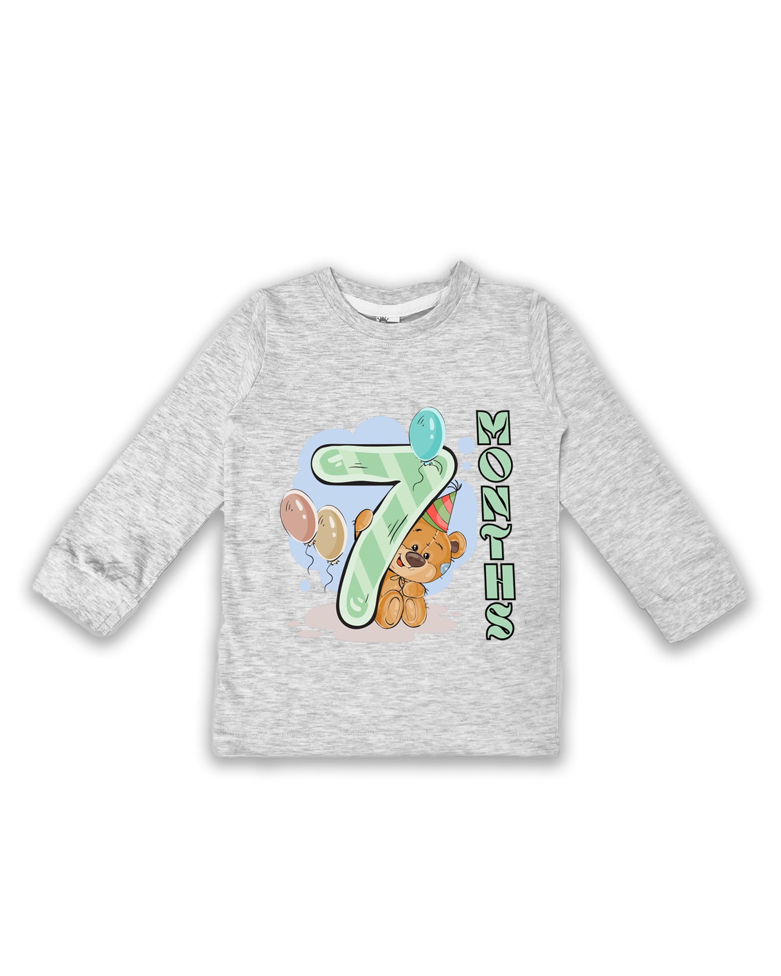 Newborn Full-Sleeve Melange Tees - 7 Months Milestone Tees with Party Bear & Balloons Design - Soft Cotton Baby Tees NPT0251
