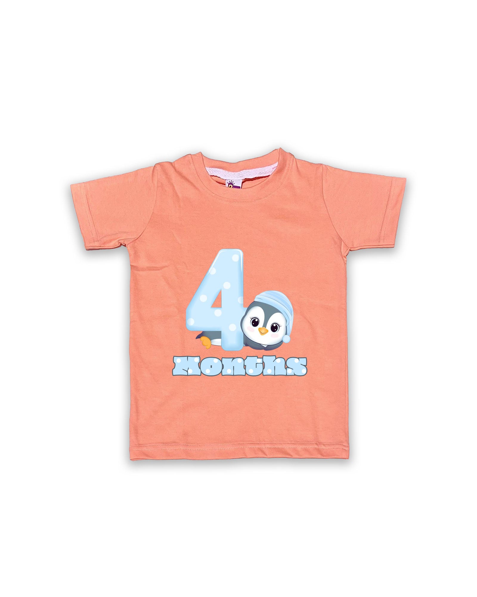 Celebrate your baby’s 4-month milestone with this cozy half-sleeve Peach Tees. Made from soft, breathable cotton, this vest provides warmth and comfort for your little one while showcasing a cute penguin wearing a cozy hat alongside the “4 Months” text. Perfect for milestone photos, daily wear, or gifting, this tees ensures your baby stays snug and stylish. The durable fabric and print make it easy to care for and ideal for long-term use.