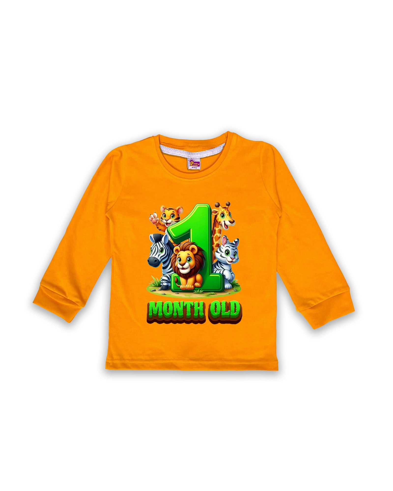 Newborn Mustard Full Sleeve "1 Month Old" Birthday Tees – Soft Cotton | Jungle Animal Print | Milestone Outfit NPT004