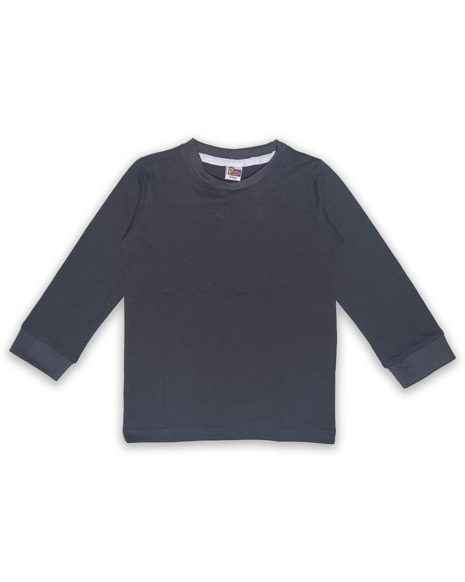Kids Dark Grey Full Sleeve Plain Tees – Comfortable Cotton Tee for Boys and Girls KTS09