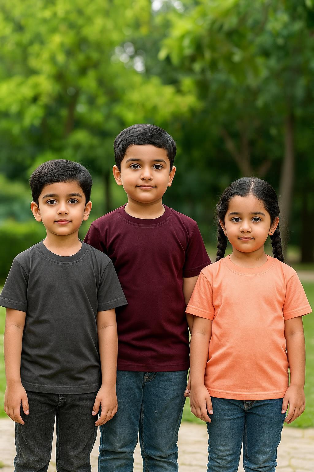 Plain T-Shirts Half Sleeve Pack of 3 (Peach,Dark Grey & Wine) CTS09